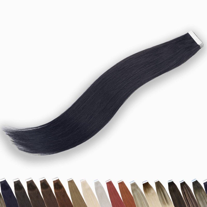 Belowilif Human Hair Tape in Extensions - Jet Black, Pre-taped Reusable Double sided Seamless Invisible Real Remy Skin Weft with Upgrade Strong Tape 4 x 0.9cm (1.58 x 0.36 Inch) 50g 20 pcs 22 Inch