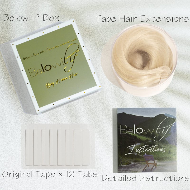 Seamless Appearance: Belowilif tape Hair extensions are better if you want a semi-permanent alternative. They are very adaptable and especially good for thin or fine hair. Belowilif tape in hair extensions is very discreet as they lay flat to your head for a seamless, natural appearance. Time-saving: No more spending 30 minutes of your morning fiddling with other hair extensions. Belowilif tape-In extensions offer luscious hair on a semi-permanent basis. Once Belowilif tape-in hair extensions are installed - that’s it! You don’t have to faff about taking them out or applying them every day. Long Life-span: Belowilif tape-In extensions last 4-8 weeks in between move-up appointments. On average, our tape In extensions can be reused 1-3 times and last between 3-6 months with proper care. Remy Hair: Remy human hair is soft and looks very natural, you can curl, straighten and blow-dry the extensions just like natural hair. You can also dye (but not bleach) Remy hair if you fancy a color refresh. Medical-grade Wider Adhesive: After scientific research, we decided to make the adhesive into a size of 0.9cm*4cm. Most of the tape-ins adhesives on the market are 0.8cm*4cm. We found that the improved 0.1cm can greatly improve durability. Our upgraded adhesive is not easy to fall off and does not leave any residue when removed.