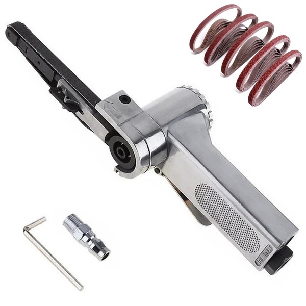 - 💗 Lightweight, safe and efficient: the ergonomic design of the belt sander ensures easy handling. This compressed air belt sander with low weight, reinforced safety and high efficiency is particularly good for hard-to-reach areas to be optimally reached for fast, clean and thorough grinding, deburring or polishing. Note: 1. Please wear a face mask during operation. 2. Regular maintenance or replacement blades.