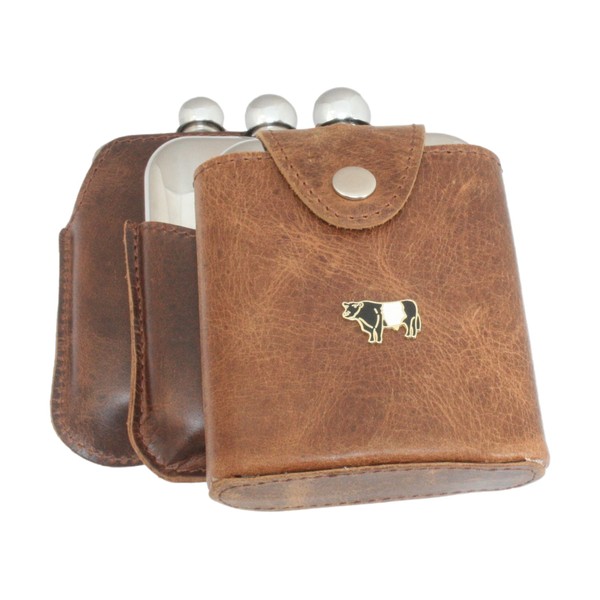 Belted Galloway Fastening Jacket 6oz Stainless Steel Hip Flask & Free Engraving 32