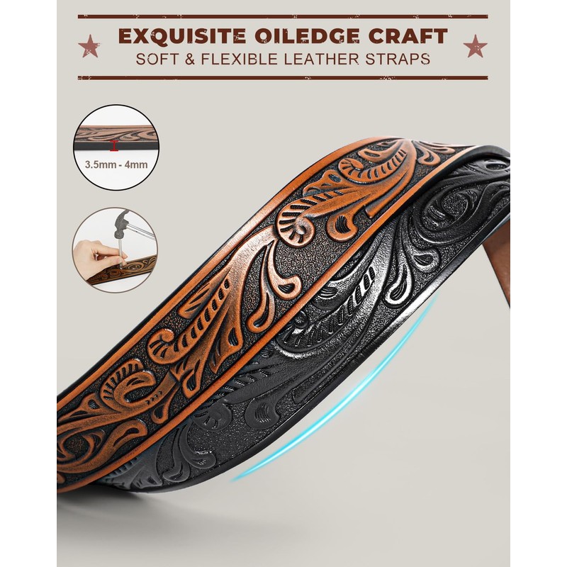 - Unique Carving: The unique mens western leather belt strap make a statement with its embossed floral pattern. Mens womens cowboy cowgirl belts straps for different occasions: a country concert, cowboy theme birthday gathering, Coachella, rodeo, etc.