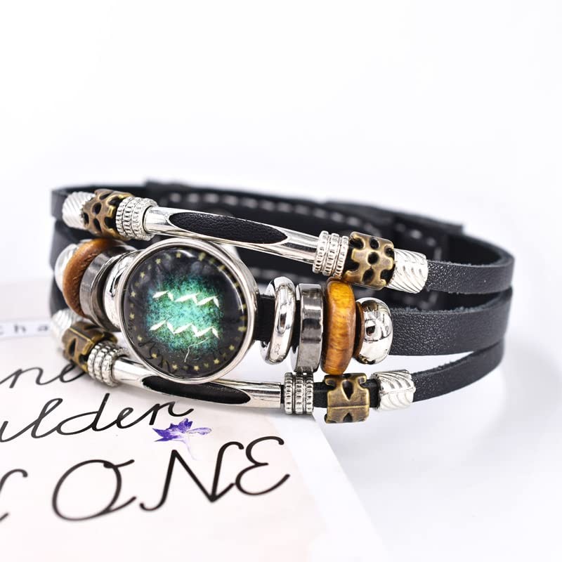 • 【MATERIAL】:Alloy+leather+glass,silver plated,12 zodiac jewelry set for women men.