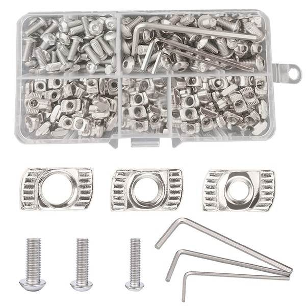 - 183 pieces: the package includes 3 different sizes of T nut nut, M3x30pcs, M4x30pcs, M5x30pcs. 3 types of screws in different sizes, M3 x 30 pieces, M4 x 30 pieces, M5 x 30 pieces. And 3 matching Allen keys.