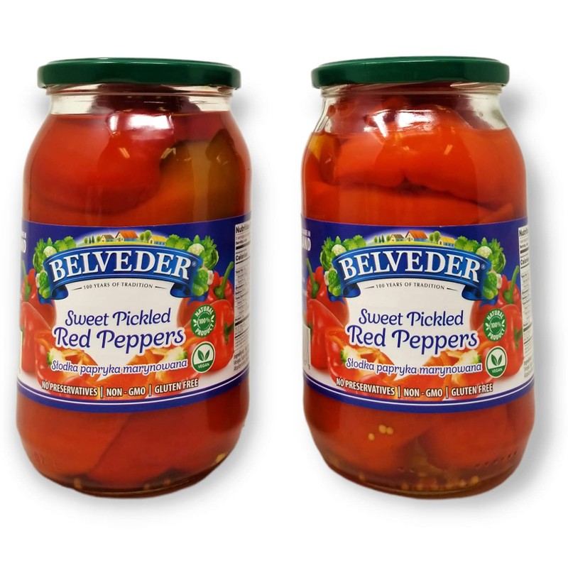Belveder Sweet Pickled Red Peppers 31.74 oz 900g, Vegan, Non-GMO, Gluten-Free Pack of 1