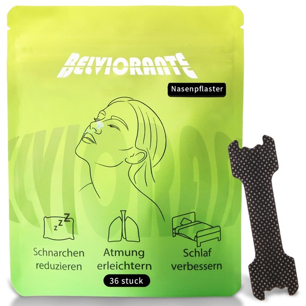 Belviorante® Parches nasales negros – Pack de 36 tiras nasales premium (mejorada) | Previenen los ronquidos, mejor respiración y sueño | Ideal para alérgicos, atletas y familias