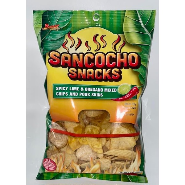 Bemar Snacks Sancocho Spicy Lime & Oregano Mixed Chips and Pork Skins 24 bags/3.5oz per bag