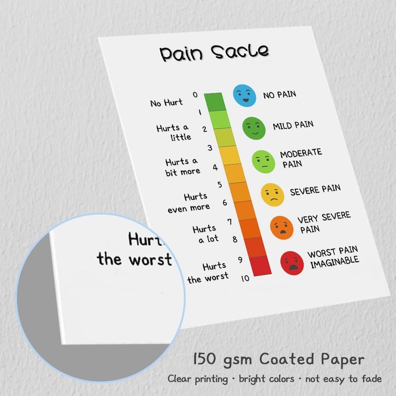 - The Pain Scale helps children understand and communicate their pain levels effectively. Suitable for kids of any age group.