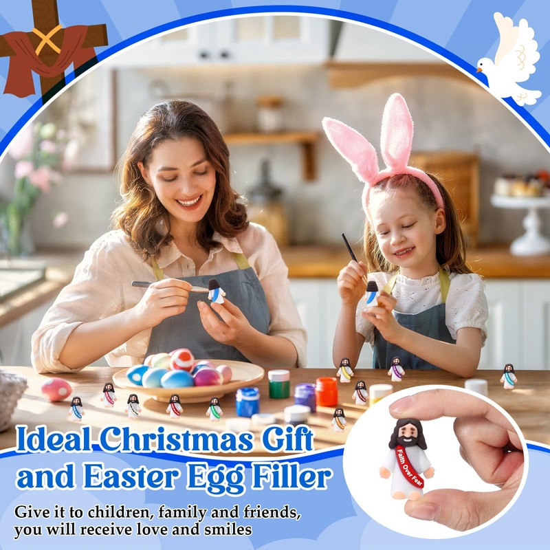 - Ideal Choice for Religious Activities: these tiny Jesus figures are designed for religious activities and are symbols of faith, adding depth and substance to any celebration; Whether it's looking for Easter eggs in the church or attending school gatherings, their energetic presence enhances the festive atmosphere; Encourage meaningful exploration to enable participants to enjoy discovering these precious figures and enrich their spiritual experiences