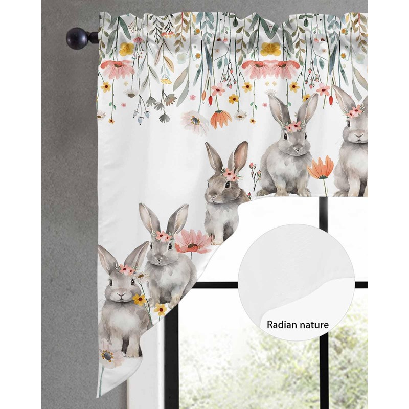 BEMIGO Easter Curtain Valance for Window, Farmhouse Cute Bunny Swag Curtains, Spring Flowers Valance for Kitchen Bedroom, Rod Pocket Window Valance Curtains Over Sink 56" W x 36" L