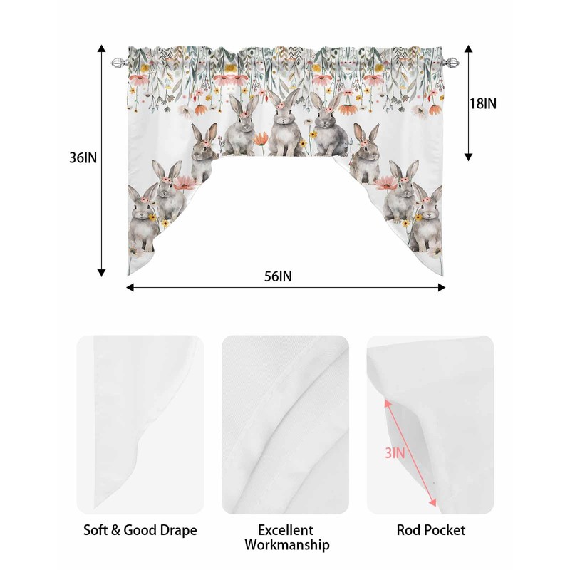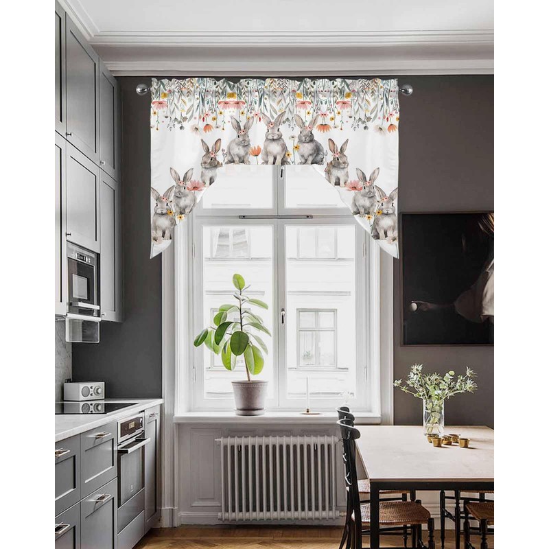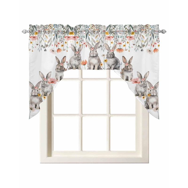 BEMIGO Easter Curtain Valance for Window, Farmhouse Cute Bunny Swag Curtains, Spring Flowers Valance for Kitchen Bedroom, Rod Pocket Window Valance Curtains Over Sink 56" W x 36" L
