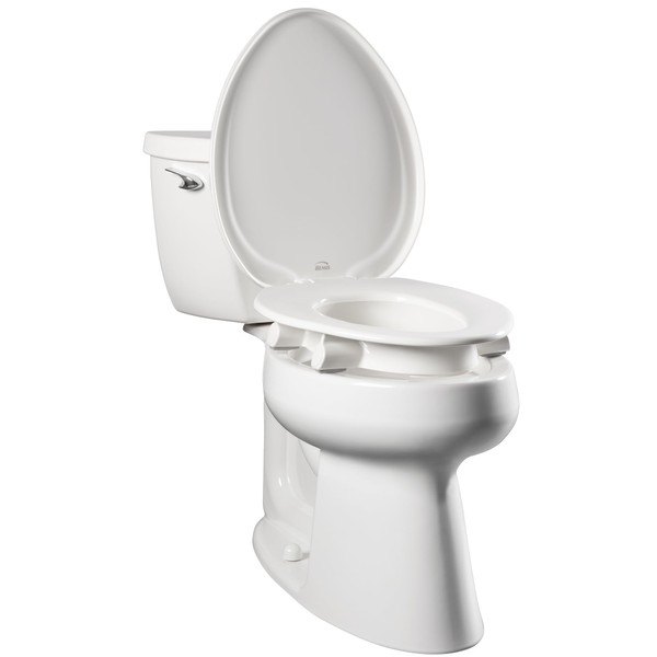 Raised toilet seat is elevated 3" to make sitting and standing easier. Innovative shield under the ring keeps everything in the bowl and is easy to clean unlike other raised toilet seats or risers. Wide, comfortable ring designed to eliminate pressure points has a weight capacity of 1000 lbs. Seat is securely fastened with Snap 2 Secure system (installation tool included) to eliminate concerns about falling. A secure seat is critical to your independence. Support Arms for this seat sold separately.