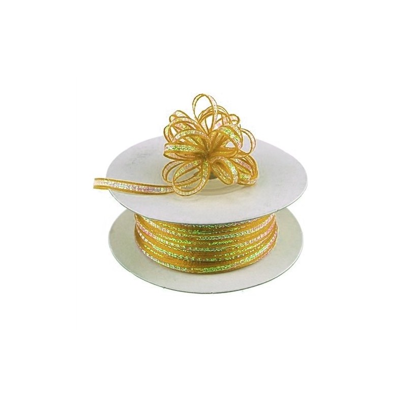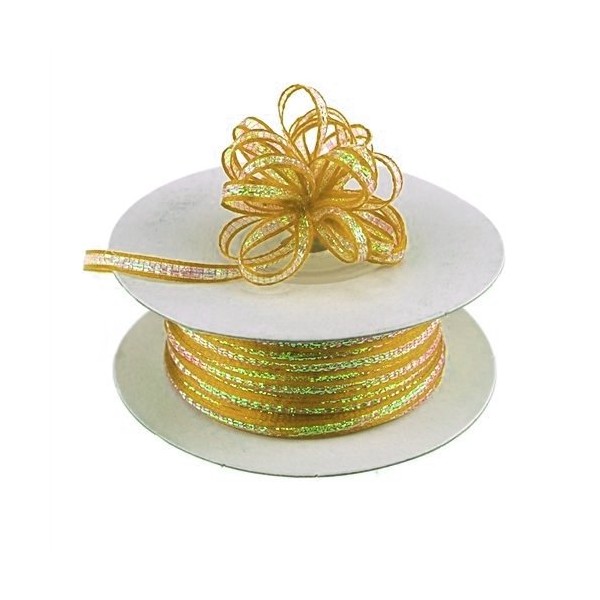 Ben Collection 1/8" X 50 Yards Iridescent Pull String Bows Ribbon (Old Gold)