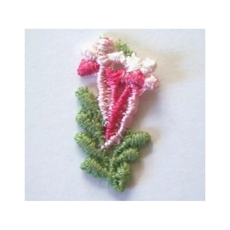 Ben Raymond N.Y. 24 Vintage Pink/Green Embroidered Rayon 5/8 x 1 1/4 Sew/Glue On Applique EJ-66p