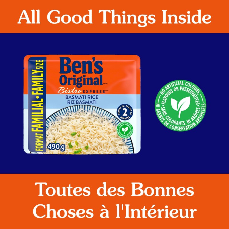 - One 490g pouch of BEN'S ORIGINAL BISTRO EXPRESS Basmati Rice Family Size Pouch