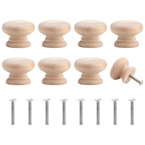 Benaewa 8 Pcs Wooden Door Knobs with Screws, 35mm*25mm Drawer Knob Handles, Natural Unlacquered Pull for Cupboard Cabinet