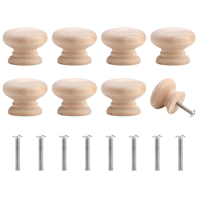 - 【Effortless Installation】: Enjoy a hassle-free setup with a set of 8 wooden mushroom handles and accompanying screws. Simply drill and attach these round cabinet knobs to your furniture
