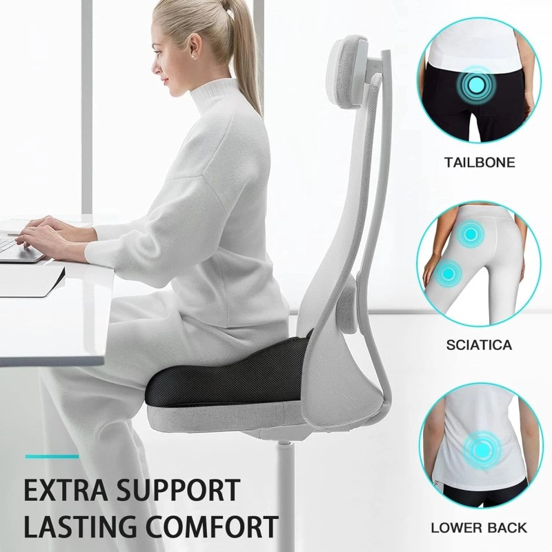 Benazcap X Large Memory Seat Cushion for Office Chair Pressure Relief Sciatica & Tailbone