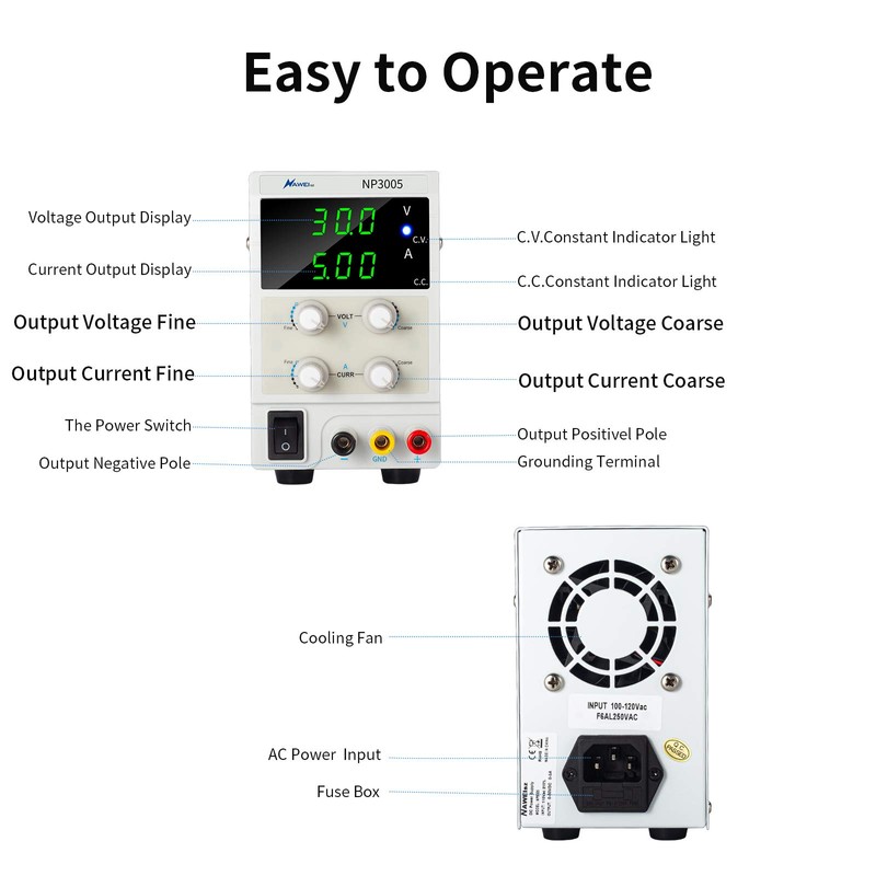 Naweisz DC Power Supply Variable is small-sized and lightweight, features high accuracy, reliability. It is a great tool for scientific research, product development, etc.