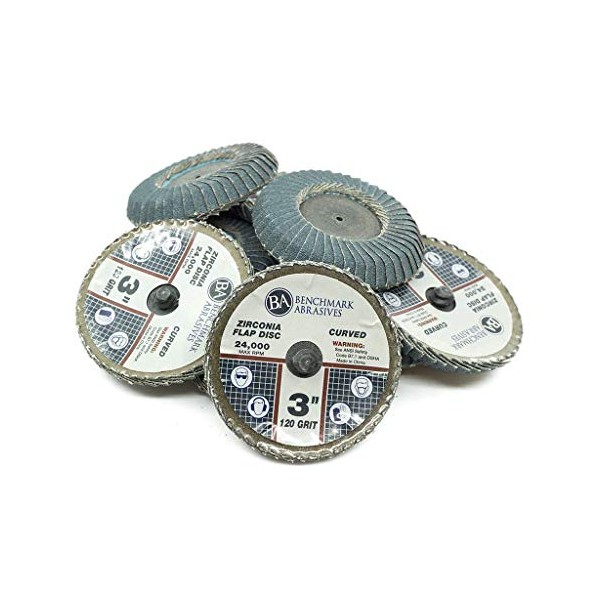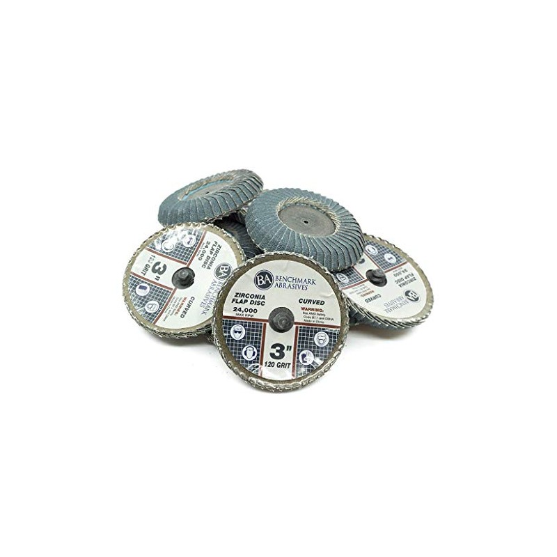Benchmark Abrasives 3 Inch Quick Change Zirconia Curved Fillet Weld Flap Discs - 10 Pack (120 Grit)