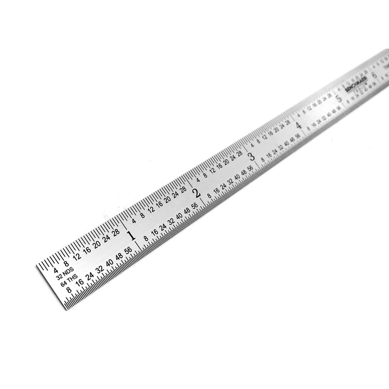 A good, quality machinist rule is an indispensable tool used by machinists, woodworkers, architects, draftsman, scientists, students, DIYers and more. When used correctly, a good steel rule is a surprisingly accurate measuring device. These rules are made from Japanese rust-resistant stainless steel that has been tempered creating a measuring tool that can flex if needed but will snap back straight. The edges and ends have been ground parallel, straight, smooth and square. Graduations are produced via a photoengraving process creating very consistent and accurate markings with uniform line widths. Once etched, graduations are black filled for easy readability. Graduation are etched and not printed so will not wear off with prolonged use. Graduations conform to strict international EEC 1 Accuracy Standards, i.e. +/- 0.2 mm at 20 Degrees C for 1000 mm Rule. 5R graduation marks feature quick-reading 32nds and 64ths on one side and 10ths and 100ths on the reverse side. Finish is brushed stainless steel. Each rule comes in vinyl storage pouch. These are well made rules and will provide years of reliable service in any shop, studio, clinic, lab, classroom or home environment.
