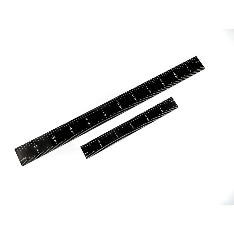 - Overall size of the 6 inch rule is 3/4 inch wide by .040 inches thick. Size of the 12 inch rule is 1 inch wide by .040 inches thick.