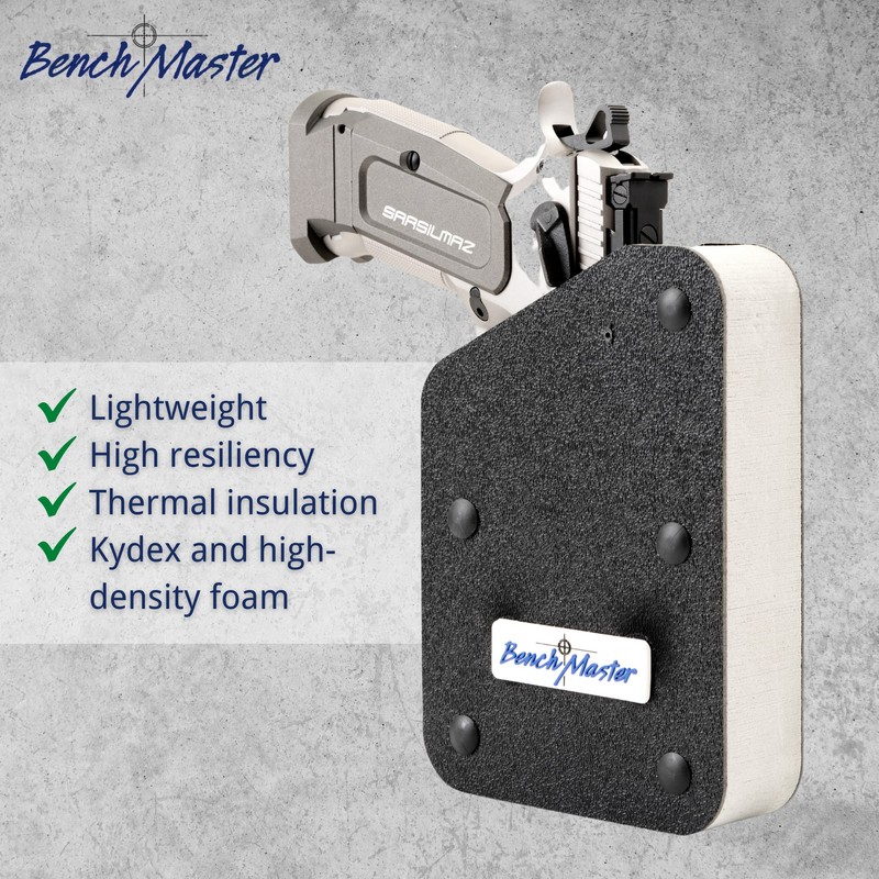 BenchMaster Magnetic Pistol Rack, Handgun Safe Storage, Holds 1 Pistol, Secure Gun Holder Organizer, Kydex, High-Density Foam, No Metal, Sturdy, No Flex, Made in USA