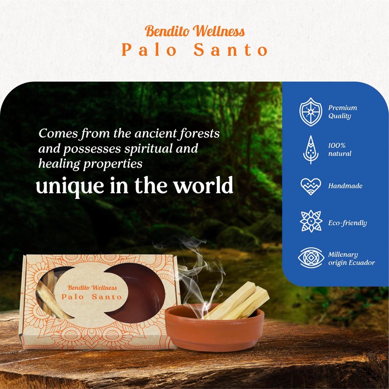 Bendito Wellness Palo Santo Sticks (Approx. 220g) Premium Ecuadorian Grade - 2 Free Holders - Sustainable Ethical Wild Harvested Hand-Picked Natural Smudge Stick for Energy Cleansing and Aromatherapy