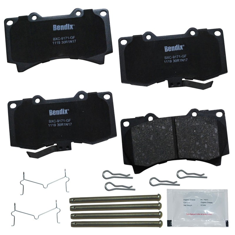Bendix Priority 1 Ceramic Brake Pads Set with Installation Hardware. These brake pads are engineered and designed to meet all OE specifications for fit, form, and function while providing safe, consistent, and reliable stopping performance. With specific shims, slots, and chamfers, the pads provide not only a precise fit but also an ultra-quiet braking experience.