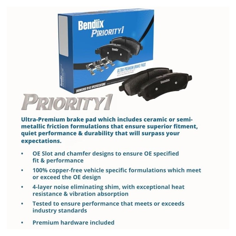- ENHANCED SAFETY: Bendix Priority 1 Brake Pads are designed to reduce brake fade and ensure consistent braking performance, enhancing safety on the road