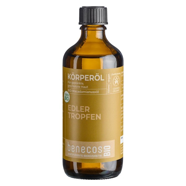 - For your nourished oil: The valuable, cold-pressed BenecosBIO macadamia nut oil is considered well tolerated and is particularly suitable for sensitive, irritated and dry skin. It strengthens the skin barrier and is also often used for the prevention of stretch marks or for scar care. Thanks to the rare fatty acid composition, the oil can be easily distributed without leaving a greasy film. It also nourishes rough, cracked hands and serves as colour protection for coloured hair. Treat yourself to elegant skin nuts. 🙂