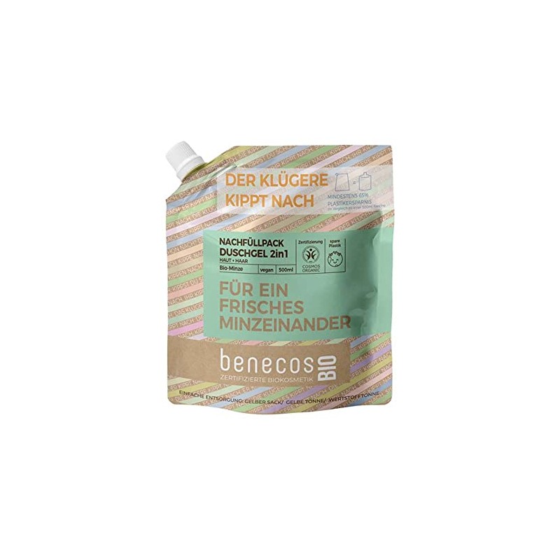 - Do you want to shower with me? The practical BenecosBIO 500 ml refill bag ensures a long shower pleasure together. And together you are known to be less lonely. On top you also save water and experience a fresh mint each other. The minty fresh fragrant, gently cleansing shower gel 2-in-1 for skin and hair with organic mint, native, nourishing organic apple juice and vegetable surfactants also leaves a vibrant skin feeling. Dermatologically tested.