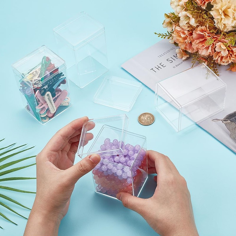 BENECREAT 10 Pcs Clear Storage Boxes with Lids, 2.2x2.5x3.7 inch Acrylic Display Box, Storage Containers for Treats Candy Beads, Storage Containers for Wedding Party
