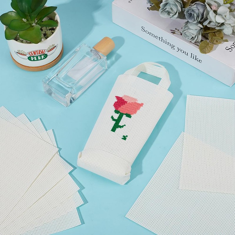 BENECREAT 12pcs Cross Stitch Cloth 14 Count 15x15cm Vinyl Canvas Embroidery Cloth Embroidery Cloth Mesh Plastic Canvas Sheet Handmade DIY Embroidery Sewing Supplies Baage