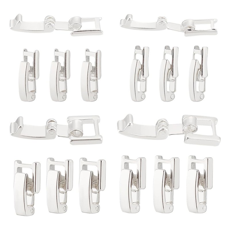 BENECREAT Brass Watch Strap Clasp, Bracelet Clasp, Silver Folding Necklace Extender for Watches, Bracelets, Necklaces Crafts Crafts, 4 pcs/style