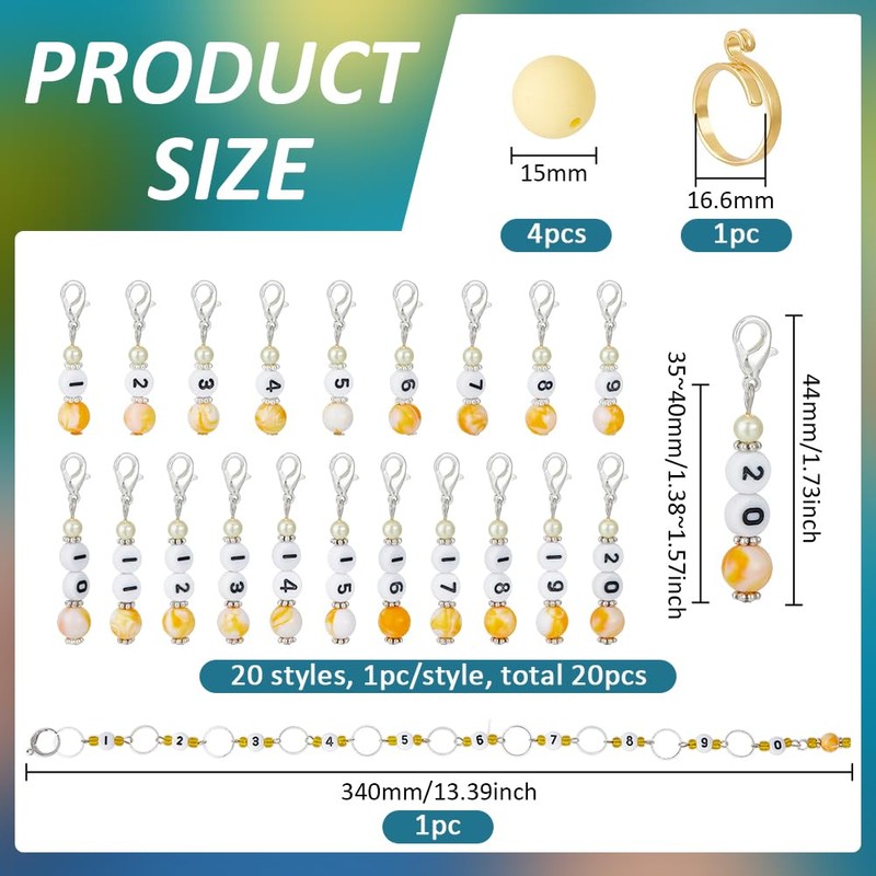 - Package Includes: You will receive 1pcs number knitting counter chain: about 340mm/13.4" long; 20pcs number marker: about 44mm, charm: 35~40mm; 4pcs silicone needle stoppers: about 15mm; 1pcs Cuff Ring: about 16.6mm inner diameter.