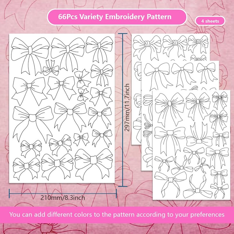 BENECREAT 4 Sheets Bow Water Soluble Embroidery Stabilizers, 36pcs Embroidery Paper with Pre-Printed Sewing Embroidery Stabilizers for Embroidery Hand Sewing Lover Beginners