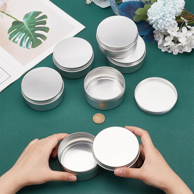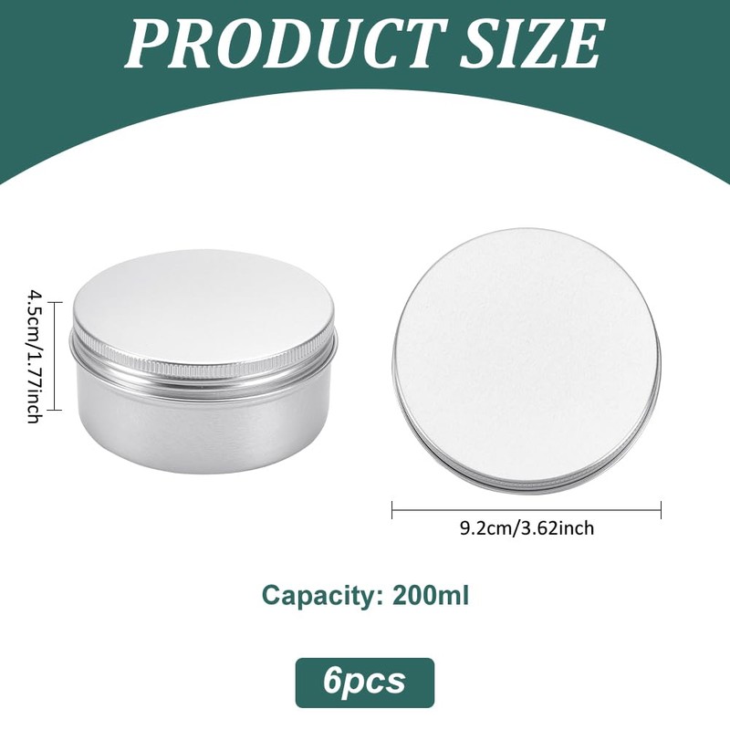 BENECREAT 6 Piece Set, 6.8 fl oz (200 ml), Aluminum Screw Cap Can, Divided Container, Refill Container, Cream Case, Storage Box for Cosmetics, Cream, Small Items, Silver