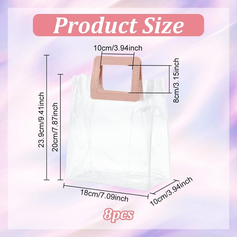 BENECREAT 8Pcs PVC Clear Gift Bags, 20x18x10cm Reusable Favor Bag with Pink Handles for Wedding, Birthday Party, Graduation, Anniversary