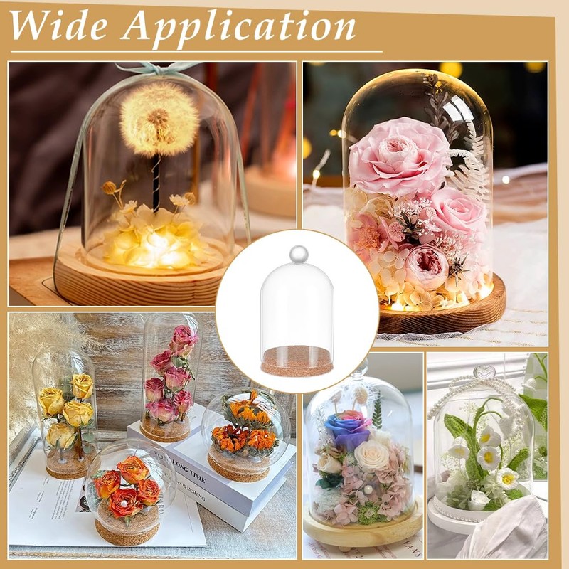 - Size: Cloche bell jar with cork base, glass: about 144x90mm/ 5.6x3.5inch, wood base: about 91x19mm/ 3.58x0.75inch.