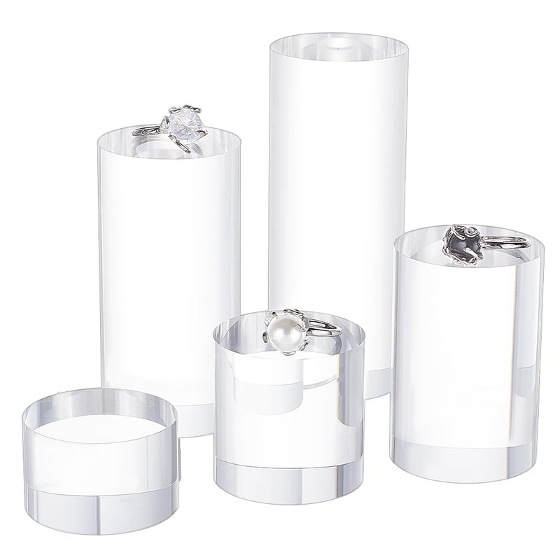 BENECREAT Pack of 5 Transparent Acrylic Display Block, 3/4/6/8/10 cm Round Cylinder Solid Display Base Stand for Jewellery, Gemstone Display, Cosmetic Presentation