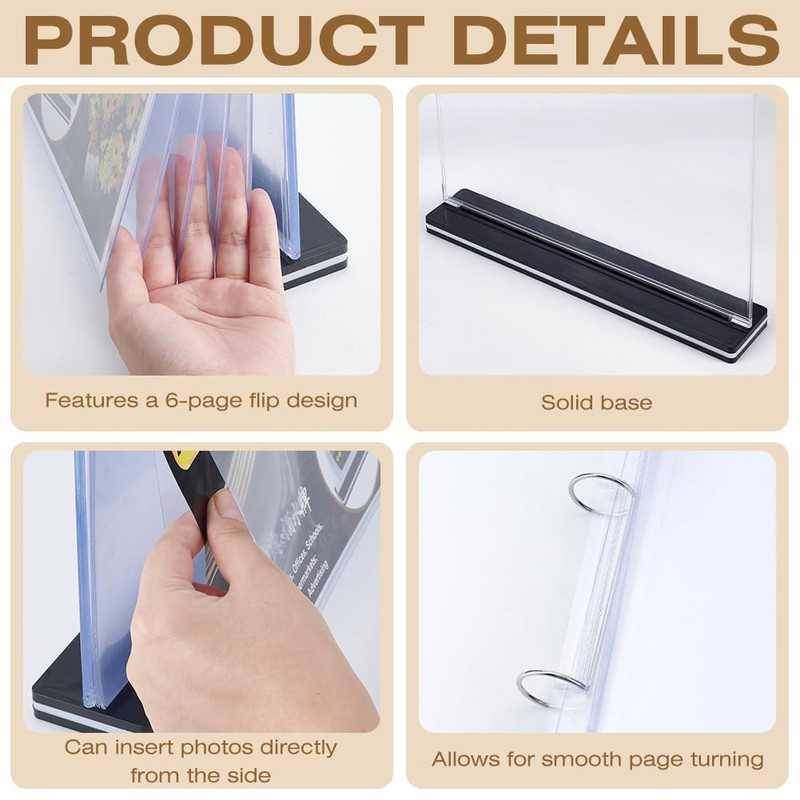 BENECREAT T-Shaped Multi-Page Flip Acrylic Sign Holder, 6-Page Desk Flip Sign Clear Flip Chart Easel for Menu/Photo/Advertising/Drink Display