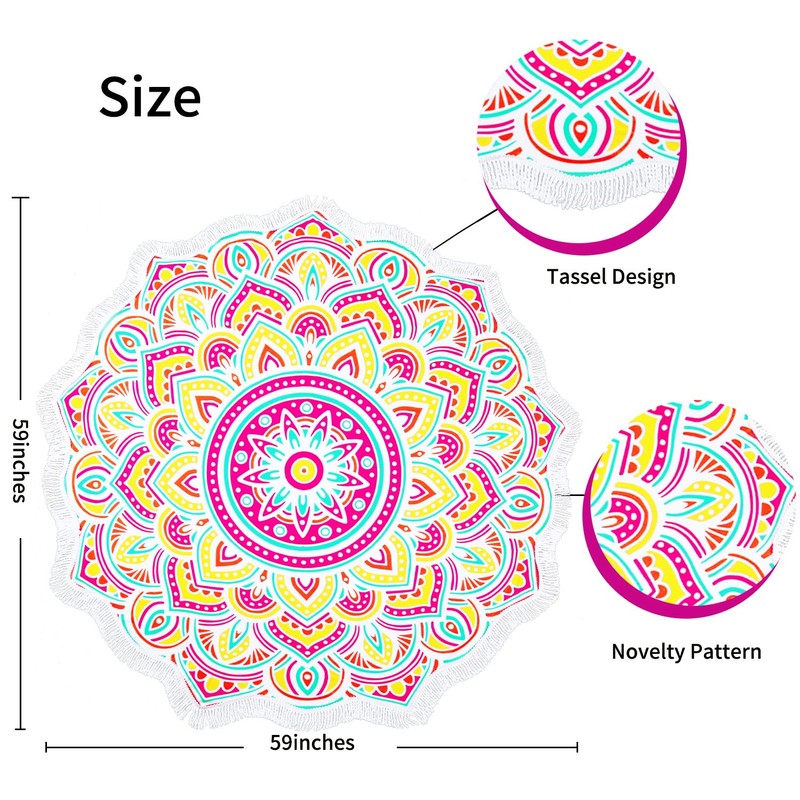 • 【Multi-Purpose】The sandproof microfiber beach towels can not only be used as beach towels or beach blanket. You can also use the round beach towels as Beach throw, Beach wrap around, Sunscreen shawl wrap skirt, Bath Towels, Pool Towels, Picnic blanket, Yoga towel; Decorative round tapestry, Round Table Clothes, Bed cover, Wall decor, Wall art, Round living room rug, Meditation mat and so on.