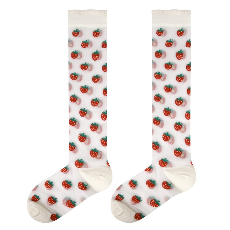 • 【Strawberry Design】Sheer Lace Knee High socks are very amazing in workmanship, make you look cute, and at the same time, the ultra thin transparent knee socks with many different cute patterns. The various colorful patterns make the pretty novelty see through transparent sheer socks look lovely and funny. The novelty lace mesh stockings will lighten up your every day!