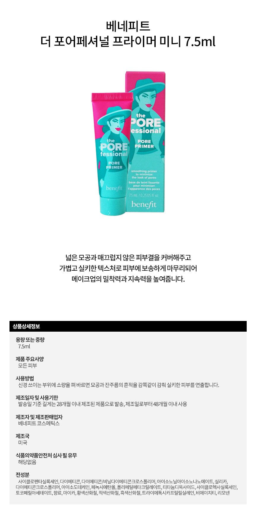 Benefit NEW 더 포어페셔널 미니 7.5ml NEW The POREfessional Mini 7.5ml