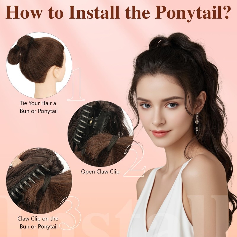 - ✿【Easy to Wear】Fixed to your ponytail with the claw clip, the claw clip stays securely in place without damaging your natural hair.