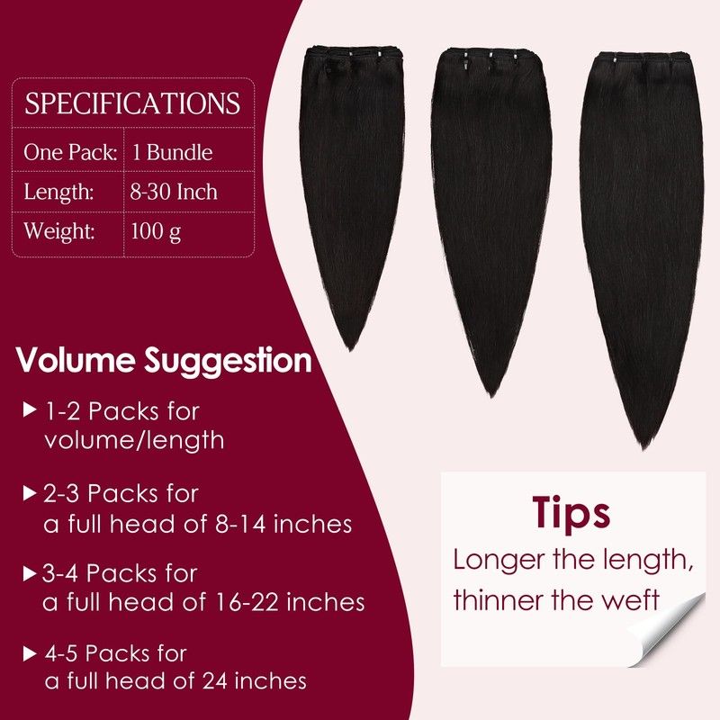 Benehair Hair Weft Extensions—Made from High Quality Real Human Hair, Hair Extensions Sourced from Healthy Donors with all Cuticles Oriented in one Direction for an Impressive Silky Texture.Weft Hair Extensions Real Human Hair can be attached in different ways. Directly sew-in, with micro link in, with clip in, glue or tape in, and make wigs or ponytails, easily get any hairstyle you like.