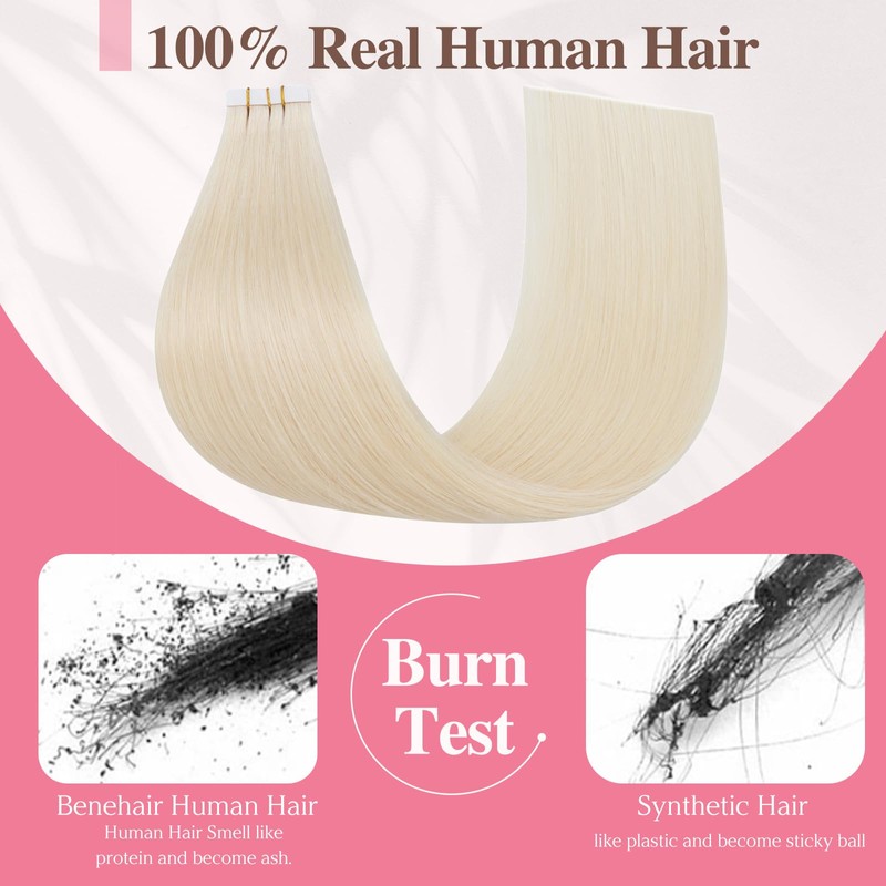 - 【Upgraded Durable Tapes】Benehair tape in hair extensions human hair use imported upgraded white glue, which is invisible and strong, blending perfectly with your hair and lasting 4-6 weeks.