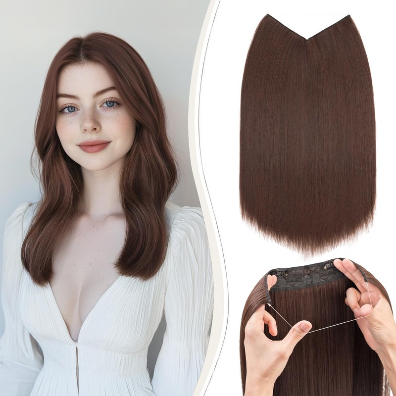 - 【Invisible Wire Hair Extensions with Clips】Transparent fish line design, can fit most kinds of head shape and be hidden in your hair.There are two removable clips inside the hairpiece to hold it in place.Choose the nearest colour for perfect match, no one can find your secret.