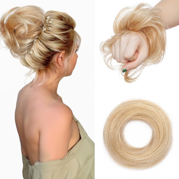 Benehair Messy Hair Scrunchies Straight Elastic Easy Hair Chignons Updo Ponytail Extensions Donut for Women Girls #18/613 Ash Blonde Mix Bleach Blonde 17g