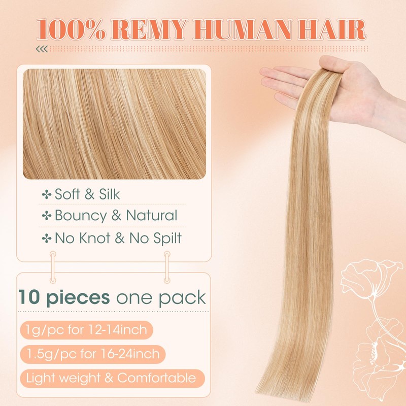 - 【Size and Color】The size of Benehair tape hair extensions real human hair is 10 Inches (10 g), the color is #12P613 Golden Brown Mix Bleach Blonde, usually 50-100g is needed for normal volume and 100-150g for a full head,depends on your hair thickness.